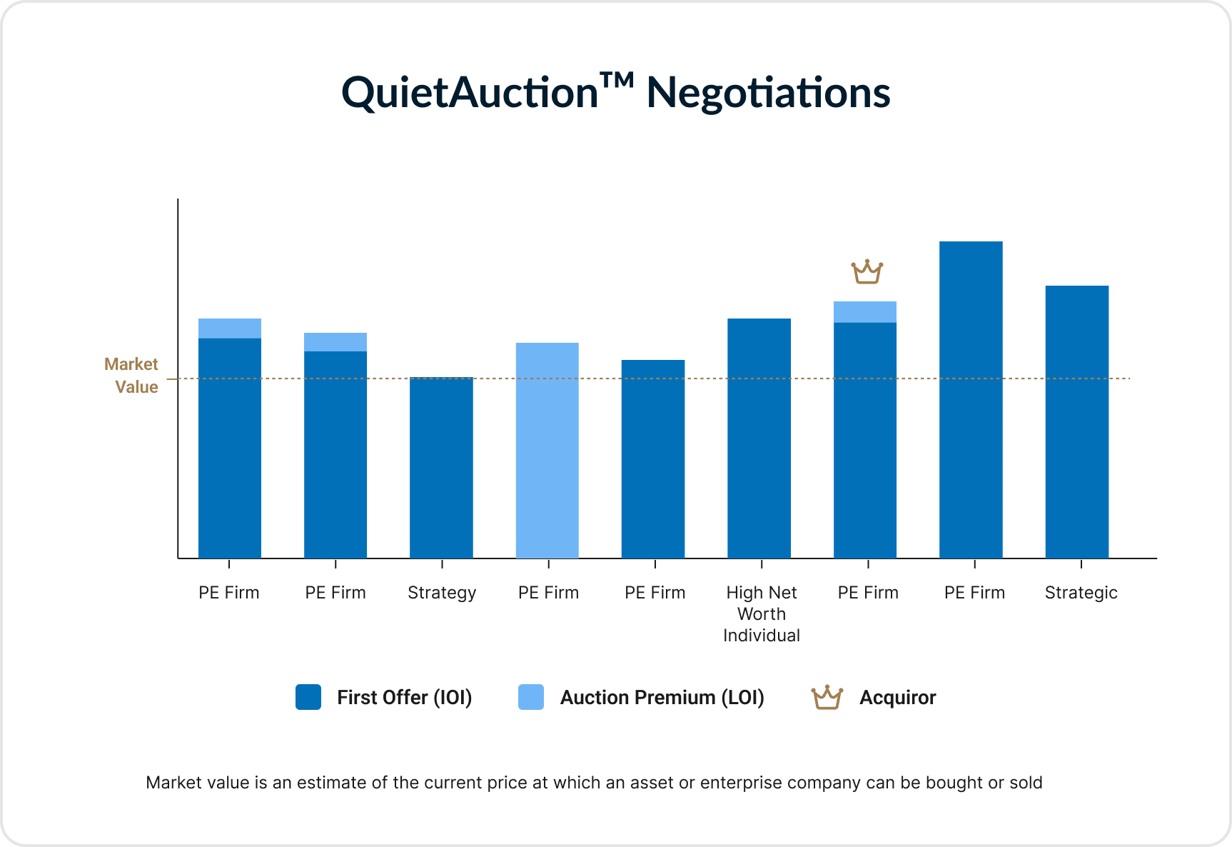 Through our proprietary QuietAuction™ process, we generated significant interest. In total, we received six indications of interest and six letters of intent.